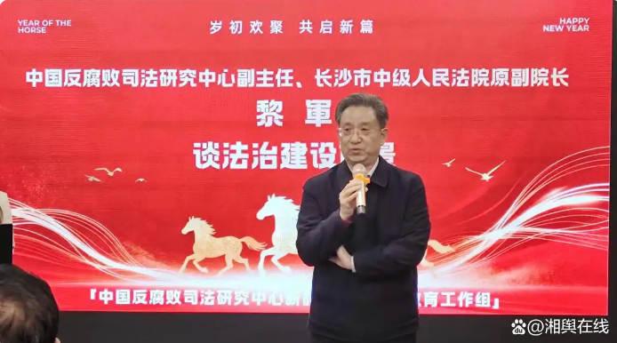 中国反腐败司法研究中心副主任黎军随后发言,深入剖析了法治建设的前景与挑战。他强调,在高质量发展阶段,法治已成为区域核心竞争力。他提出法治建设需坚持“破立结合”:既要坚决打击腐败侵权,维护市场秩序;也要主动构建适应新质生产力和新兴产业的法律服务体系。他特别指出,人工智能、新能源等领域的快速发展对现有法律提出新课题,法治宣传必须前瞻介入,提供有效指引。